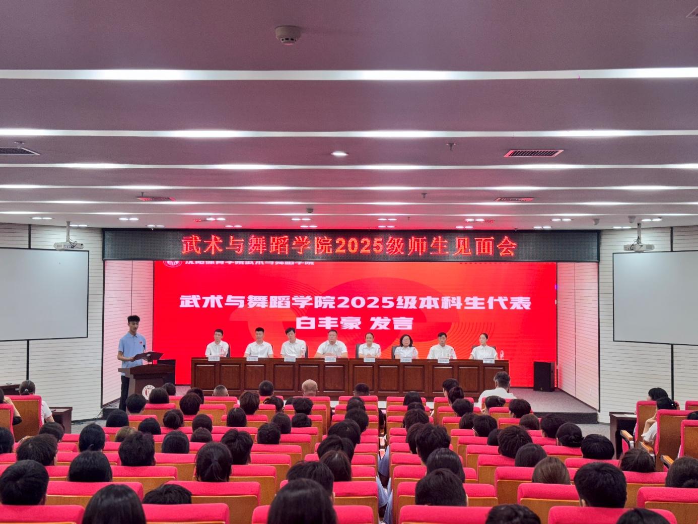 院长勾庆华从学校概况、学院及专业发展历程、师资力量、特色培养体系等方面作简要介绍,勉励新生珍惜学习机会,深耕武术与舞蹈领域,注重“武舞融合、德艺双修”,以勤学苦练锤炼专业本领,将来为学科建设与发展贡献力量。